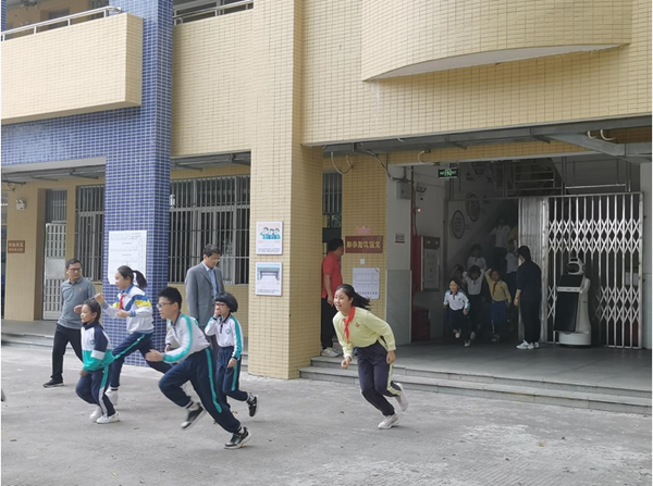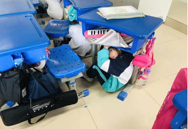 16:00,伴随着地震警报的长鸣声,演练开始了。各班班主任迅速指导学生进行教室内应急避险。只见同学们立刻拿起课本或书包护住头,躲到课桌下、墙角等地方。随后,地震警报解除,应急疏散警报信号发出。班主任指导学生按预设安全逃生路线迅速、有序撤离,按要求来到空旷的运动场,整个防震疏散活逃过程紧张而有序。