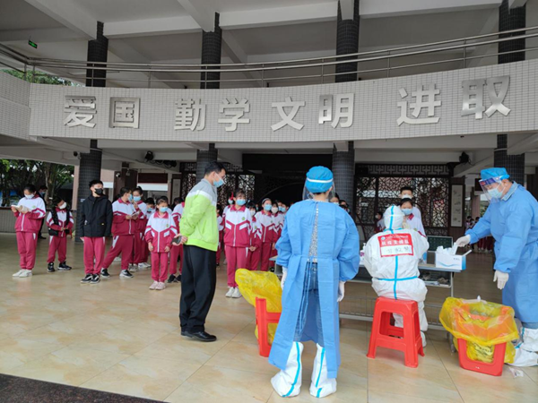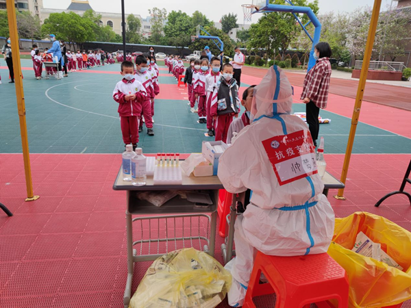 为进一步落实上级领导部门的疫情防控措施,落实疫情期间防控主体责任,保障全校师生的身体健康和生命安全,火炬区第四小学全力配合火炬区开展的全员大规模核酸检测工作,于3月29日开展第二轮全体在校学生、教职工核酸检测工作。此次全校全员核酸检测工作于13:10开始,15:45结束,顺利有序完成。