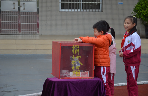 首先,学校大队辅导员黄倩霞老师宣读了慈善万人行捐款倡议书。接着,教师队伍按顺序依次捐款。随后在班主任的带领下,各班学生代表依次上台,把手中的善款放入捐款箱内。伴随着悠扬的旋律,整个捐款活动积极而热烈,点滴爱心汇聚成爱的海洋。
