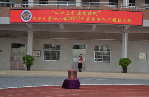 奉献爱心,播种希望,为了传承中山博爱精神,传递爱的力量,营造慈善氛围,共建美好家园。2022年2月14日上午,火炬区第四小学全体师生齐聚学校操场,参与了2022年春季慈善万人行捐款活动。