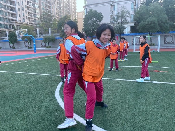 欢乐不停是由双人跳绳、背部夹球、抛毽子和一穿到底组成的团队游戏。游戏初始,每队都“气势汹汹”准备着,队员都互相呐喊加油,互相协助。有的同学一直过不了关卡,但是一直没有放弃,不气馁,最后,在大家的鼓励下,顺利通关。最终每支队伍都顺利完成游戏。同学们纷纷表示,团队成员在互相沟通,互相帮助中建立了信任,同时,大家领悟到在面对困难和挫折时,要珍惜生命、把握转机,创造美好,积极面对生活。