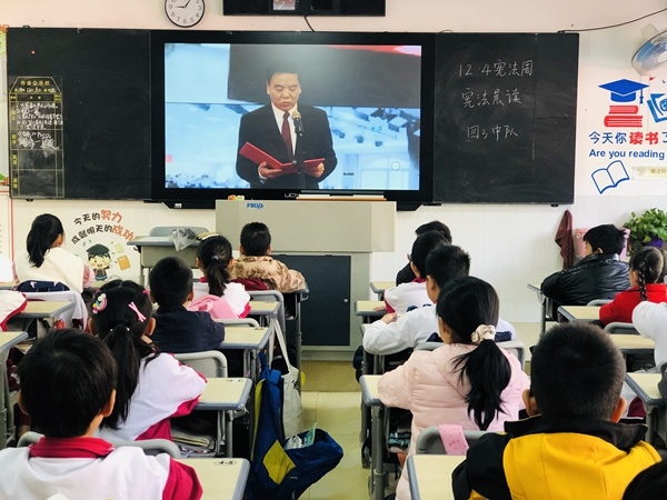 12月3日上午9点左右,全体师生参加了第八届国家宪法日“宪法晨读”活动。在活动中,大家通过教育部全国青少年普法网收看网络直播,同步跟读宪法晨读内容、跟唱歌曲《宪法伴星空体育成长》、认真倾听优秀学生进行展演等。其中七岁女孩以光头强的故事来讲宪法知识,通俗易懂,引起学生对宪法学习的极大兴趣。