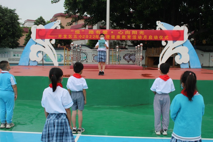为进一步加强校园心理健康教育工作,宣传普及心理健康知识,增强全校师生的心理保健意识,培养学生健全的心理素质,构建和谐校园,火炬区第五小学于5月23日上午,开展了以“‘疫’路有爱,心向阳光”为主题的心理健康活动月启动仪式。