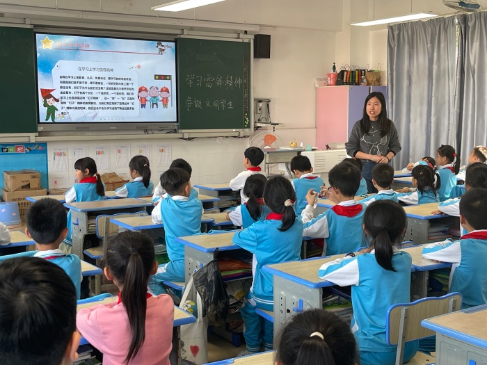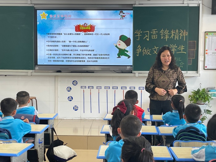 下午,各中队召开“学习雷锋精神 争做文明学生”主题班队会课。活动中,学生们听雷锋事迹,讲雷锋故事。大家积极发言,表示要把精神融入到学习和生活中,以实际行动传承雷锋精神。要从身边的小事做起,争取向陋习告别,向坏习惯告别,以新时代的雷锋精神为榜样立足根本,脚踏实地传承雷锋精神。