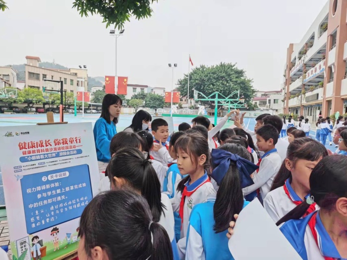 活动首先由来自中山火炬开发区医院的苏定旺医生给同学们带来了“爱护眼睛,保护视力”的专题讲座,苏医生围绕什么是近视、我国儿童青少年的近视现状、造成近视的因素、近视后怎么办等内容,给同学们带来了一节生动、形象的健康讲座。讲座结束后,还开展了“小眼睛看大世界”游园会活动,游园活动中,主办方还以海报、画册的形式进一步形象地向同学们宣传了预防近视的知识,与会同学们热情高涨,积极参与活动并到兑奖处兑奖。此外,还对参与本次活动的学生进行了全员视力筛查,并给检测到有近视的孩子一个数据,让其带回家给父母。