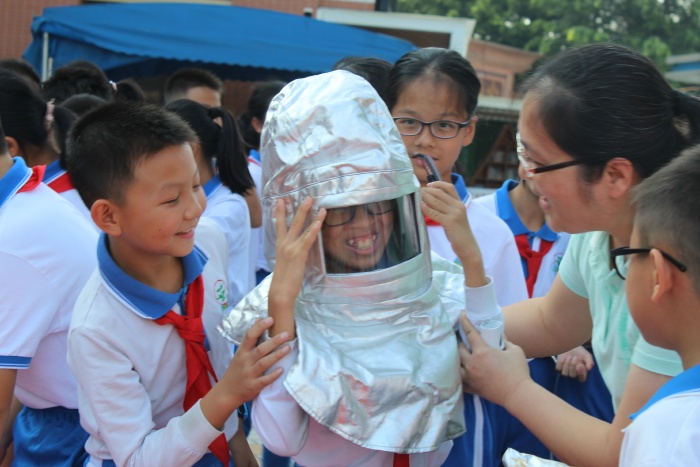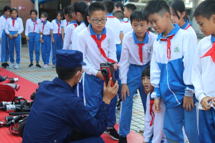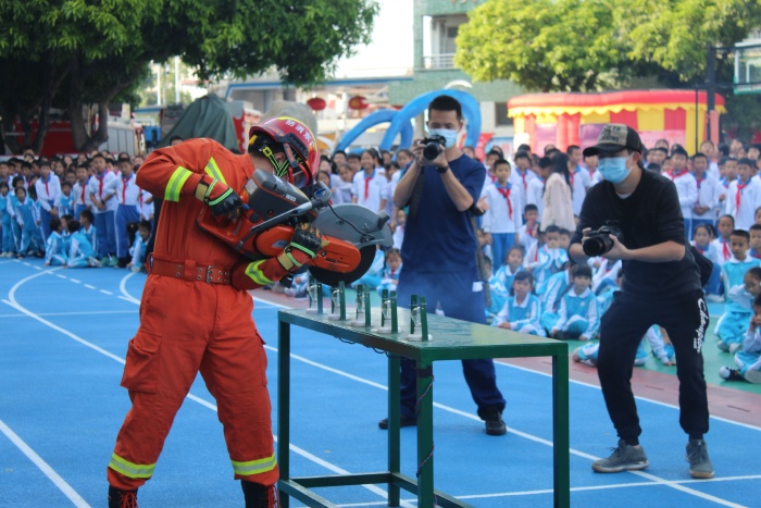 消防安全疏散演练结束后,学校德育主任曹老师对活动进行总结:整个演练严谨而有序,达到了演练的预期目的。开发区消防大队曾建财队长为学生讲解了火灾逃生时的一些注意事项,提醒孩子们要根据火势大小,冷静思考后选择正确的逃生方式。消防员们还为学生表演了精彩的绝活:液压钳夹乒乓球、灯泡上切割铁丝,阵阵的掌声把活动推向了高潮。随后,各班级组织学生观看消防员用灭火器扑火,体验“模拟火灾逃生屋”,参观消防安全用品。