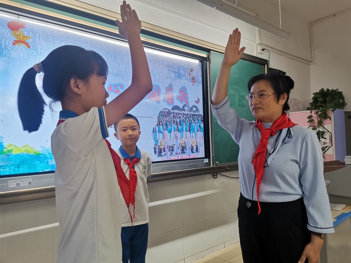 队会课上,全体队员一起回顾了在天安门广场举行的庆祝中国共产党成立100周年大会盛况,认真观看了献词视频,再次感受到在中国共产党的领导下中国的繁荣与强大,孩子们心潮澎湃,热血沸腾。随后,队员们从自己的视角出发,融入了生活体验,把与中国共产党相关的红色历史、红色地标、爱国人士等历史资源,以讲故事的形式让更多的同学感受了党的温暖。最后,各中队举行了“请党放心 强国有我”宣誓仪式,大力弘扬“请党放心 强国有我”的理想信念,激发广大少先队员爱党爱国情怀。