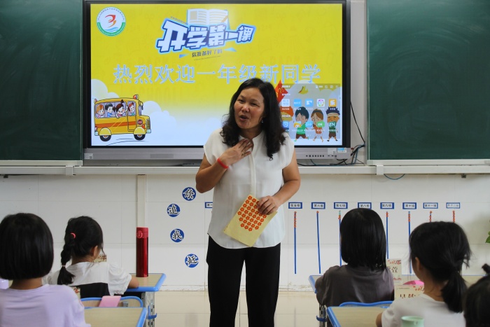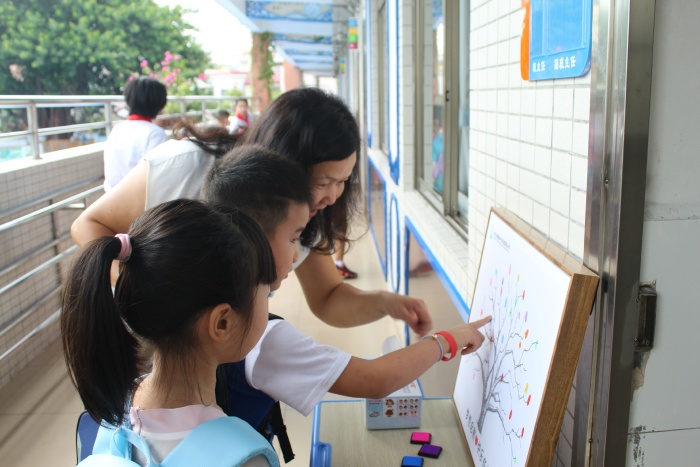 孩子们在老师亲切的微笑中,踏进了各自温馨整洁的教室,开始了新生培训旅程。老师们从一日常规、礼仪教育入手,培养学生基本的学习习惯与行为习惯,热情洋溢、深入浅出地对新生进行讲礼貌、知安全、懂常规、爱学校的教育。随后,还带领孩子们参观校园,认识老师们办公室、各个班级、操场,让他们近距离感受到美丽的校园环境,激发了他们对小学生活的美好向往。为养成学习、生活好习惯做足准备!