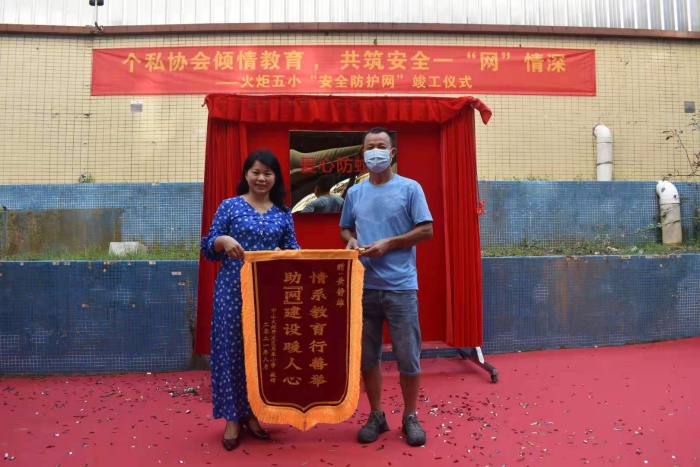 据悉,2021年“六一”儿童节前夕,区党工委委员林子平、火炬区市场监督管理局副局长尹俐玲带领个私协会成员到火炬五小进行慰问,过程中得知学校教学楼背靠山体,因围墙离山太近时常会有蛇虫出没,存在安全隐患后,个私协会表示愿意为学校捐建“校园安全防蛇网”。经过1个月的设计与施工,“校园安全防蛇网”于8月中旬正式完工并投入使用。