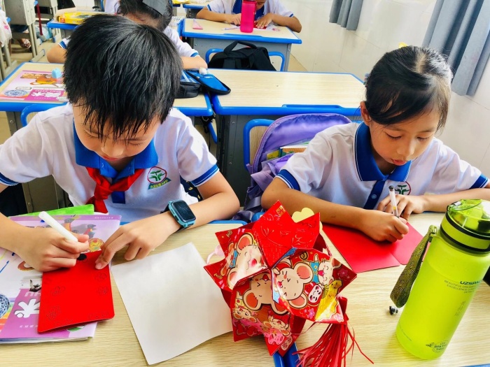 除此以外,学校美术科组还利用美术课堂,开展“巧手绘中秋 佳节送祝福”活动。通过制作节日贺卡、灯笼、手抄报等,队员们对中秋节的传统文化有了更深入的了解,在感受自主制作乐趣的同时,更体验了中国传统节日的魅力。