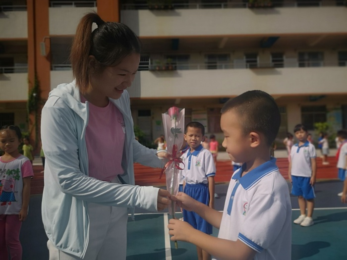 九月的秋风送来阵阵清爽,九月的阳光捧上热情的祝福,在这收获的金秋时节,迎来了第36个中国教师节。为表达对园丁们默默付出的感谢与祝福,9月10日上午,火炬区第五小学全体师生于学校操场集中,开展以“立德树人责任担当 教育脱贫托举希望”为主题的教育活动,共同庆祝教师节的到来。