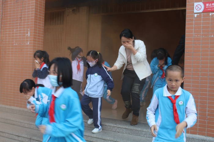 3点55分,随着火灾警报声的响起,全体学生在老师的指导下,按照规定的路线,快速、有序地往楼下撤离,到楼下后跑步前往指定地点集合。各楼层楼梯口、转弯处值班的老师恪尽职守,指挥和疏导学生紧急撤离。学生捂住口鼻,猫腰靠墙迅速撤离,秩序井然。到达运动场后,各年级迅速清点人数,并及时将清点结果汇报给演练总指挥,为后续工作开展提供了数据支持。从警报声响起到最后一名学生撤离到操场,仅用时2分22秒。
