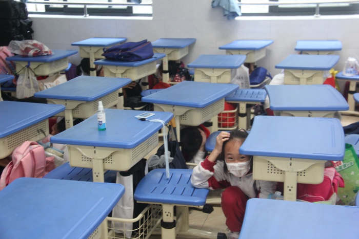 一声急促的警报声拉开了“安全疏散演练”活动帷幕,全校师生按照既定的“防震应急疏散演练预案”进行疏散演练。听到警报声,各位老师立即到达指定岗位,正在上课的学生听到地震预警后,在班主任老师的指导下迅速钻进课桌下进行紧急避险,震波过后,学生按老师的指挥快速离开教室跑到学校操场的安全地带。整个演练过程做到快速、安全、有序。