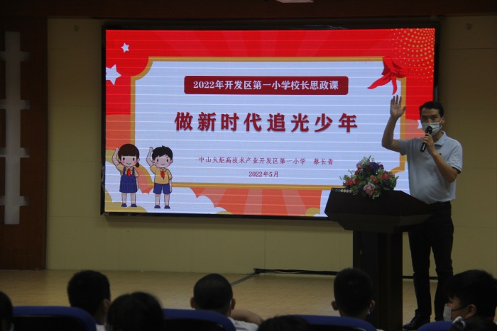 习近平总书记在《在同各界优秀青年代表座谈时的讲话》(2013年5 月4日)中说到,为每个青少年播种梦想、点燃梦想,让更多青少年敢于有梦、勇于追梦、勤于圆梦,让每个青少年都为实现中国梦增添强大青春能量。5月9日,在2022年开发区第一小学校长思政课《做新时代追光少年》上,蔡长青校长带领五年级的学生开启了圆梦前的追光之旅。