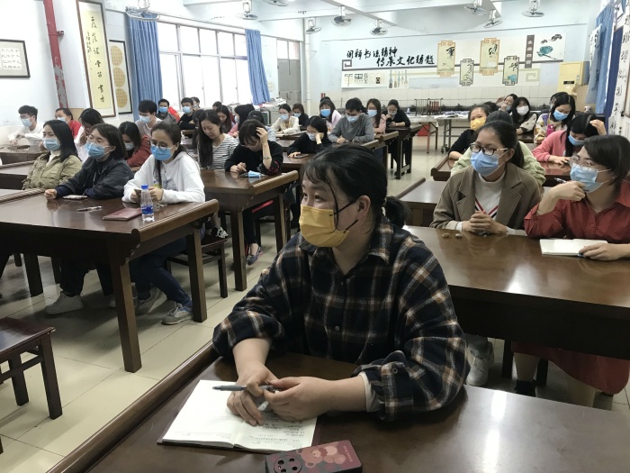 星期五下午5:20,即使忙碌一周,开发区第一小学40岁以下的52位青年教师仍然兴致勃勃地走进文澜楼三楼书法室,静候一场写字培训。整个培训过程包含了三说“字如其人”。一说,主持人何思行老师以自己童年的练字故事及体验为这场青年教师写字培训活动引入“字如其人”的主题。二说,学校书法老师李堆威作为本次培训的指导老师旁征博引,以如何写好粉笔字引领青年教师应该怎样写字、怎样做人。三说,梁程茵老师作为青年骨干分享了天天习字的体会。她以“字是老师的第二张脸”激发着比她年长的老师的练字动力。52颗练字决心在凝神聆听中萌生,何思行老师便就各科组的特点提出了今后的练字目标。最后,蔡长青校长语重心长地结语,殷切期望青年教师能热情高涨地投入到练字培训活动中,日渐焕发一小教师傲然的职业“匠气”。
