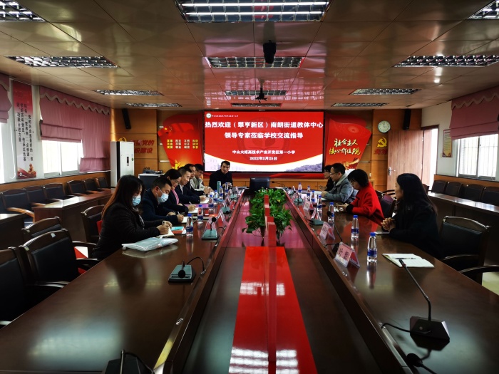 春回大地,朋来远方。2月27日,翠亨新区(南朗街道)教体中心黄嘉宏副主任带领教研员和中心教研组组长一行6人莅临开发区第一小学学习交流。开发区第一小学蔡长青校长热情接待了本次学习探讨活动,开发区第一小学陈平副校长、连慧瑜和叶辉两位教导副主任以及胡晶晶、黄爱媚、何思行语文、数学、英语三位科组长共同参与了交流。