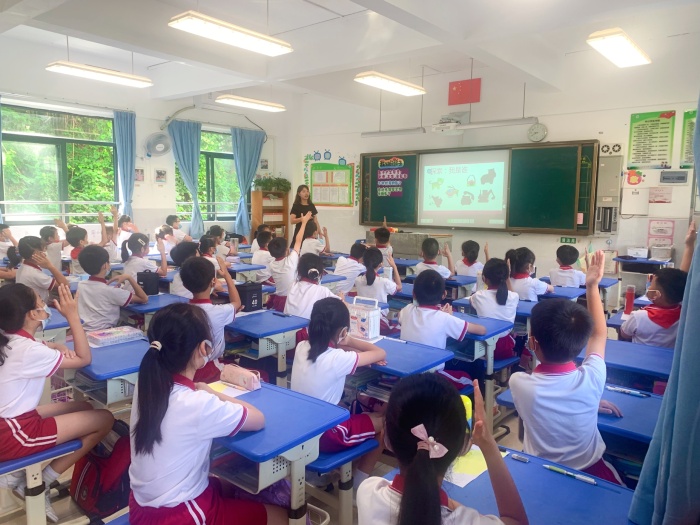 第一节课是开发区第一小学李思祺老师在二(7)班执教的《星空体育的影子》。李老师的课堂,通过新颖独特的情景模拟导入课堂,课堂环节环环相扣,思路清晰,教学方式多样化,通过丰富的教具运用,探索不同材质下影子的特点和影子的移动规律,将科学内容融入于美术课堂,充分吸引了学生的注意力,调动起学生学习的兴趣,展现了一节精彩纷呈的美术课。