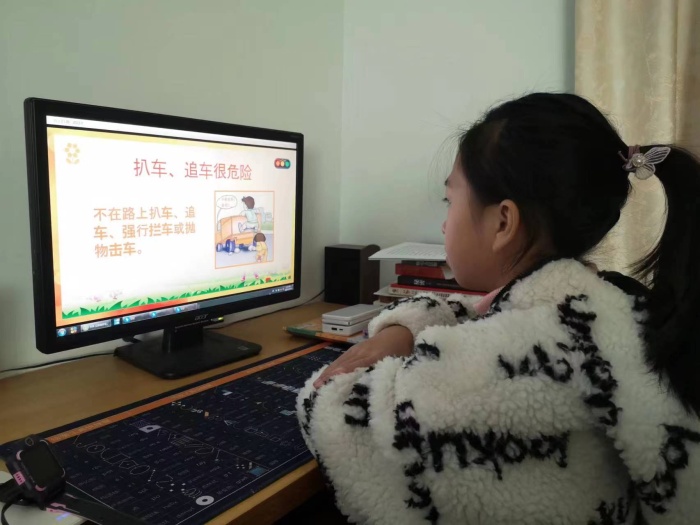 在线上安全教育主题班会中,班主任重点强调了假期遵守交通规则、防火安全和冬季预防煤气中毒等方面的安全教育,并提出了相关的安全要求,提倡学生不仅要学会识别危险,更要做家庭安全监督员,与家长一道,在家庭用电、用火、用煤气等方面筑建坚实的“防火墙”,共同守护居家的健康和安全。