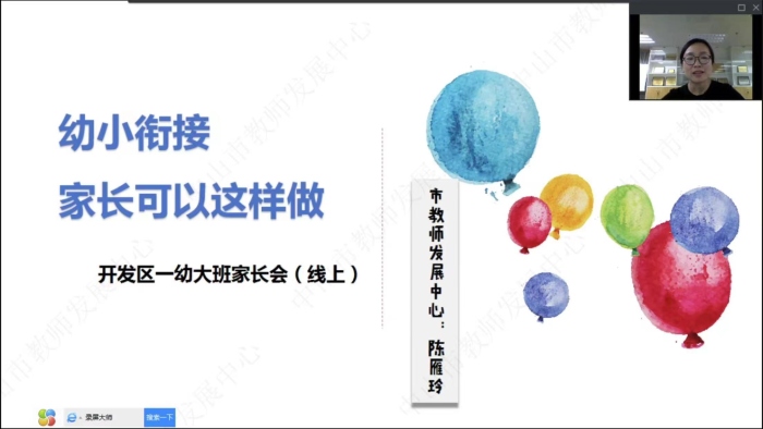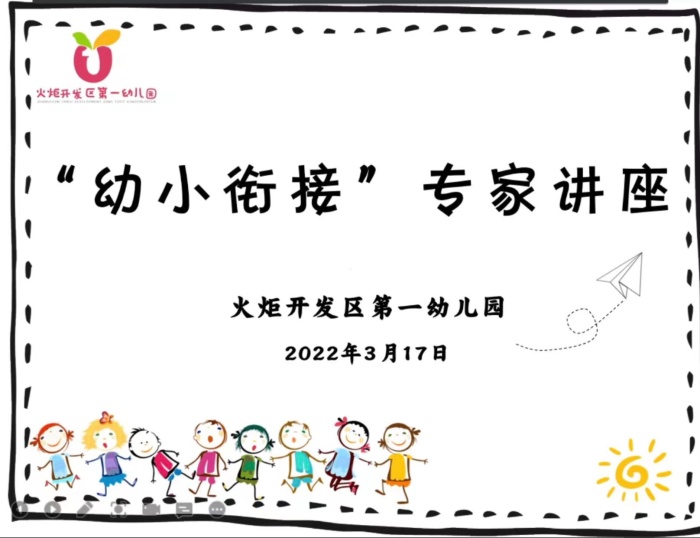 幼小衔接是幼儿从学前期向学龄期发展的过渡时期,也是幼儿心理发展的一个非常重要的转折期。为了缓解大班家长面对幼儿“幼小衔接”的焦虑不安,科学合理地帮助幼儿做好上小学的准备,火炬开发区第一幼儿园于2022年3月17日晚上特邀中山市教师发展中心教师培训部副部长陈雁玲博士为广大家长开展主题为《幼小衔接——家长可以这样做》的线上专题讲座。