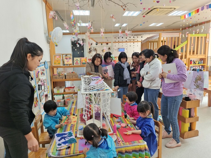 全园教师分级组、分时段对指定试点班级进行半日生活的观摩。观摩活动主要聚焦在一日环节安排的合理性、班级教师之间的配合度、教师对各环节的清晰度、教师课前的准备、幼儿在各环节的自主性与秩序性、幼儿核心经验的发展、教师应对突发情况的灵活性等方面。教师以旁观者的身份观摩一日生活,以代入者的身份结合自身的经验,在观摩中引发思考,构思下一步实践计划。