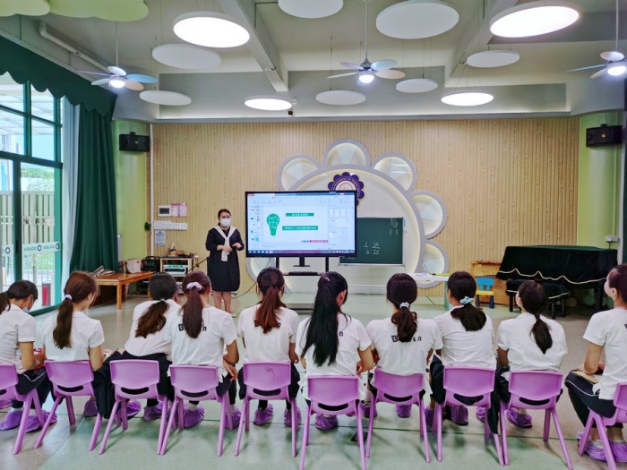 中山市博文英文艺术幼儿园已经使用该教材多时,为了进一步提高教师的专业素养,培养出一批具有先进教学理念和教育技能的教师,在上学期教学培训的基础上,中山市博文英文艺术幼儿园于2021年5月10日邀请京师乐育教育集团的讲师到幼儿园音乐室对教师们进行情境互动式幼儿数学教育课程的教学培训。
