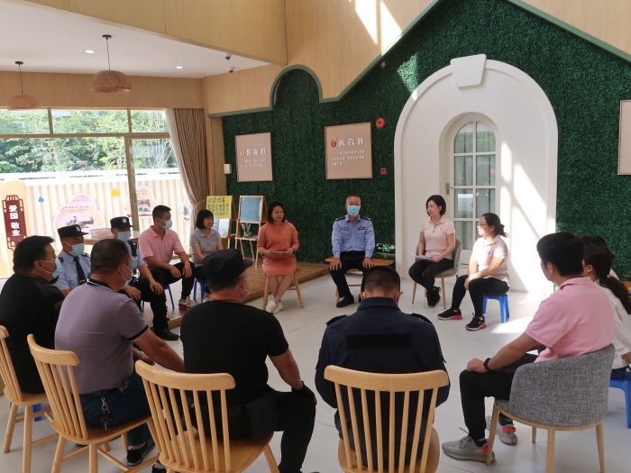 随即,由开发区幼教党支部王萍书记组织开发区一幼行政班子、安保人员及驻校民警召开防暴演练工作总结会议。会上,后勤副园长苏丹娜就本次演练各项事宜作总结反思,提到要进一步加强安全防范意识,加大培训的力度,提高警惕性,防患于未然。王萍书记还强调,当危险发生时,要充分利用现场资源,调动家长义工的力量,投入到安全防护中来;其次,防护用具要做到勤检查勤维护,做到有备无患。