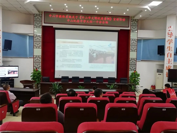6月17日上午,中山市教体系统《中山市文明行为促进条例》(以下简称《条例》)宣讲活动在中山市教体局召开,中山纪念中学火炬一中全体行政在阶梯报告厅在线参与学习活动。