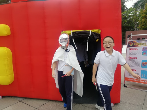 595安全大篷车上面的巨幅显示屏播放交通事故和心肺复苏演示视频,让学生增强遵守交通规则意识并了解心肺复苏动作要领;区市场监督管理分局现场派发“安全饮食 健康生活”的宣传册,让同学们树立“食以安为先”的意识;充气的隐患排查屋给学生带来满满的现场感,在黑暗和浓烟中体验穿越“火场”的滋味;隐患排查屋,大家逐一排查帐篷中的消防、高坠、用电、用气、用水、刀具等安全隐患并加以消除。
