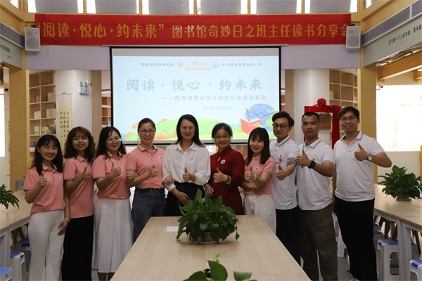 为全面提高班级管理能力,提升教育教学水平,增强教师的文化底蕴,努力打造一支内外兼修的中山纪念中学火炬一中班主任工作队伍,4月24号,在世界第28个世界读书日之际,纪中火炬一中骄阳班主任研究会组织开展“阅读·悦心·约未来”图书馆奇妙日之班主任读书分享会,活动由初二1班班主任谢素丹、初二3班班主任邓晨煜主持。校党总支书记、副校长程炜敏,副校长高东霞,全校共67名班主任及德育干部齐聚远航书馆,共同“悦心”,穿越一场书香袅袅的奇妙时光。