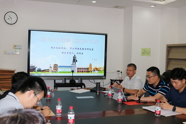 会上,广东省小学科学教研基地主持人中山市教育教学研究室教研员冯玉生老师进行了《依托项目式教学,优化科学课堂》的基地建设方案汇报。冯老师从项目建设背景、目标、建设任务、进度安排、人员分工、经费使用计划、建设预期成果和成果、建设保障条件八个方面对基地的项目进行详尽汇报。冯老师表示,基地建设将立足科学课堂,聚焦项目式教学,以学习为基础,以实践为途径,以反思和行动研究为主要手段,创新区域教研模式与方向,关注一线教师的需求,探索优质科学课堂教学模式,提升教研教学水平,培养学生核心素养。