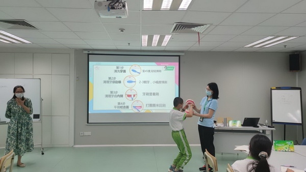 在口腔保健讲座中,工作人员结合精美的课件,图文并茂地从口腔常识、常见口腔疾病、护齿妙招这三大板块对同学们进行了专业的讲解。同学们一边认真聆听,一边仔细做笔记,积极参与互动。通过讲座,同学们掌握了牙齿的构造、牙齿健康的标准、如何顺利度过换牙期、蛀牙症状、如何应对牙齿外伤和怎样使用水平颤动拂刷法刷牙等知识,提高了口腔保健意识和能力。