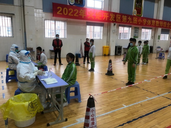 下午两点,核酸检测正式开始。党员教师志愿者们各司其职,有的穿上防护服投身到核酸检测信息采集工作中,有的维持好现场秩序,有的指引学生有序离场。香晖园小学为全校学生制作了核酸码卡片,学生只需拿着核酸码卡片就能自主完成扫码工作,既提高了核酸检测的效率,又减轻了班主任的工作量。在学校各部门的配合下,当日下午四点半,香晖园小学顺利完成了对全体教职工和学生的核酸检测采样工作。