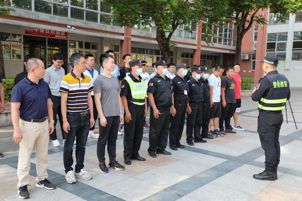 香晖园小学副校长刘裕发表讲话,对警务教官莅临指导表示欢迎和感谢,他强调,党员教师要发挥先锋模范带头作用,与学校安保队形成合力,切实保障学校师生的生命安全。