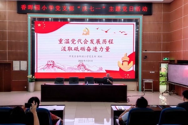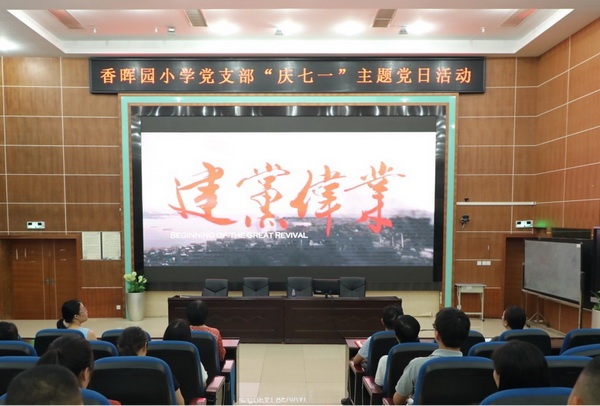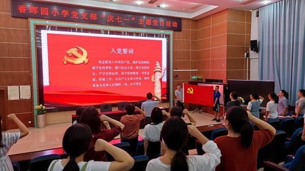 为热烈庆祝中国共产党成立101周年,回顾党的百年光辉历程,弘扬党的光荣传统和优良作风,7月1日下午,香晖园小学党支部开展了“庆七一”主题党日活动。党支部副书记刘裕主持活动并讲党课,全体党员教师参加了活动。