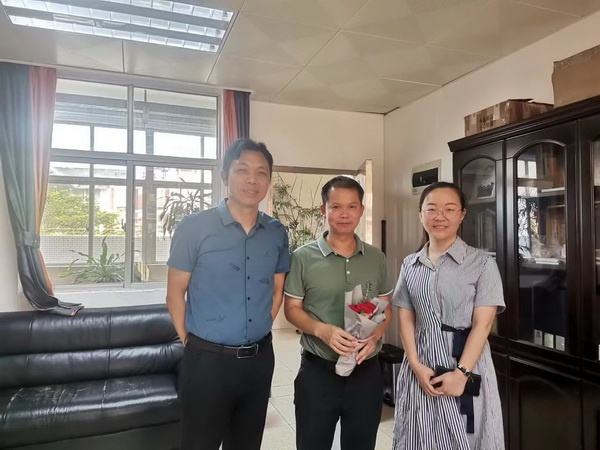 秋风送爽,金桂飘香。2022年9月9日上午,在第38个教师节来临之际,受火炬开发区教育事务指导中心钟海清主任委托,教育中心徐霞霞副校长来到香晖园小学,在欧阳祝棣校长等领导的陪同下为惠州市惠东县实验小学跟岗行政何文彬主任送去节日的问候和诚挚的祝福。