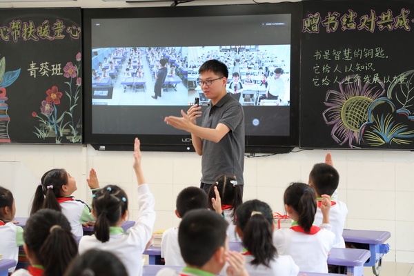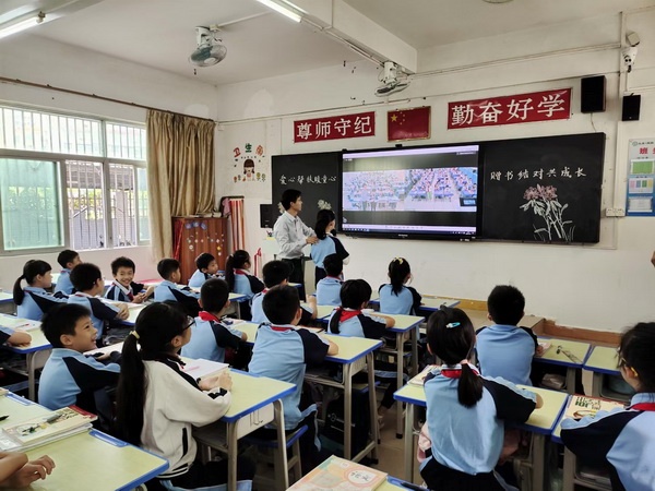 据悉,香晖园小学四(5)青葵班以融合生命教育为特色。一年级入学至今,该班积极开展书香班级文化建设,已形成了良好的书香氛围。在得知原语文老师吴书铭所支教的班级读书资源相对匮乏的信息后,班主任陈浩亮老师向青葵班全体同学发出赠书倡议,得到了同学们的热烈响应。每位“小青葵”都从自己喜爱的图书中,筛选出适合四年级的经典必读图书,并在图书的扉页上精心设计富有特色的赠书祝福。