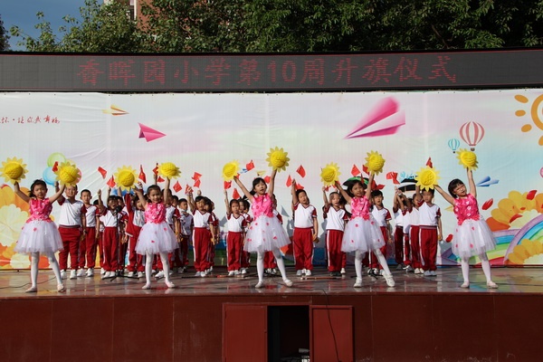 10月31日,蓝天下,操场上,迎着初升的晨曦,开发区香晖园小学举行了庄重的升旗仪式。本周升旗仪式由二(3)中队队员王安琪主持。