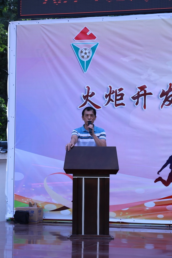 升旗仪式结束后,火炬开发区教育事务指导中心股长詹必国致闭幕辞,他首先向所有参赛队员表示热烈的祝贺!对付出辛勤劳动的裁判员、教练员以及全体工作人员表示崇高的敬意!他表示,本次足球联赛各代表队,本着友谊、健康、参与的宗旨,充分发扬了敢于拼搏、勇于进取的竞技精神,赛出了风格和水平,展示了自我形象,赢得了对手尊重。他指出,此次校园足球联赛在紧张的疫情防控情势下举行,队员们积极备赛,全身心投入比赛。在赛场上,运动健儿们精神饱满,斗志昂扬,不言放弃、为荣誉而战的坚定信念,凭借精湛的脚法、犀利的射门、默契的配合,展现了足球运动的独特魅力。