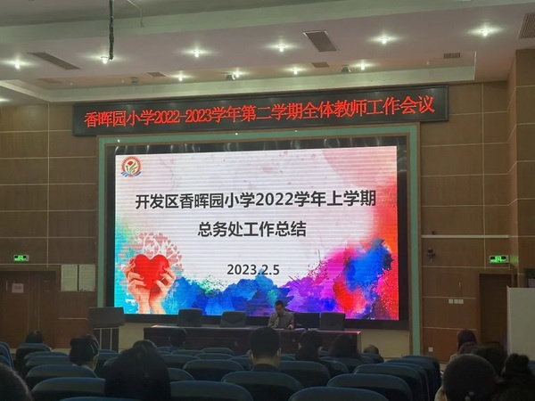 伴随着兔年元宵节的喜悦,满怀奋进新征程的豪情,2月5日上午,开发区香晖园小学在报告厅举行2023年春季新学期教师工作会议,会议由行政办副主任郑清云主持。