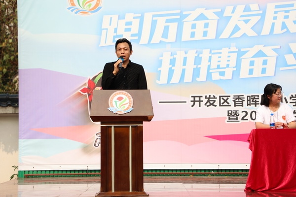 随后,开发区香晖园小学校长欧阳祝棣对本次运动会表达了美好祝愿和期盼,希望孩子们能够勇于挑战,敢于拼搏,发扬“友谊第一、比赛第二”的体育道德风尚,服从裁判、公平竞赛、赛出风格、赛出水平,展现良好的精神风貌,为班增光、为校添彩,并宣布本次运动会正式开幕,鼓舞人心的话语和铿锵有力的宣告迎来了阵阵掌声。