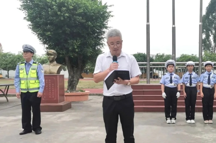 随后,新苗学校副校长段岳华对“小交警”活动进行总结。他说,“小交警”成立以来开展了多项卓有成效的道路交通安全知识宣传活动,希望同学们向“小交警”学习,严格遵守道路交通安全法规,强化交通安全意识,做遵守交通规则的示范者和维护者,并通过自己带动家长遵守交通规则。最后,段校长强调骑乘电动车、摩托车必须要佩戴安全头盔。