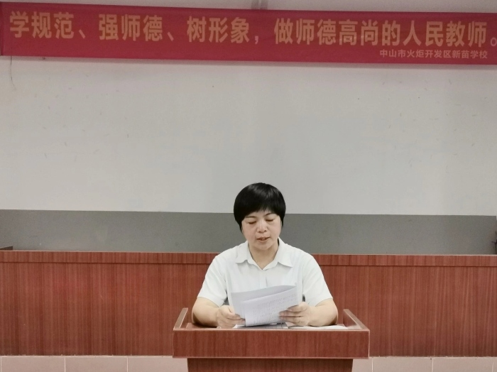 陶行知先生曾经说过:“学高为师,德高为范。”良好的师德,高尚的师风是做好教育的核心。为了不断提高新苗学校教师的师德修养,加强教师队伍师德师风建设,树立严格自律、爱岗敬业、为人师表的良好教师形象,增强教师教书育人的光荣感、责任感和使命感,9月8日晚,新苗学校举行了“学规范、强师德、树形象,做师德高尚的人民教师”师德师风专题培训会。此次培训会由新苗学校校长邹丽主持。