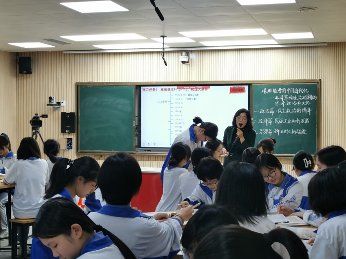 为推动问题情境式课堂改革和提升工程20.研修落地,充分发挥骨干教师的示范带动作用,中山市龙山中学于2022年5月中旬开展骨干教师示范课活动。中山市龙山中学高二年级历史科组李义娟老师给大家呈现了题为《艰难推进的中国近代化——北洋军阀统治时期的政治、经济、文化》的精彩课程。