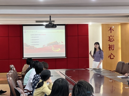 其次,团委书记石峥介绍了五四红旗团支部的参评条件,通报了现阶段各班级团费的缴纳情况,并布置相关团委工作。
