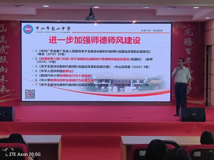 为了进一步加强学校德育工作的针对性和实效性,提高德育教学水平,明确新学期德育工作方向。近日,中山市龙山中学召开了以“奋进超越,幸福育人”为主题的开学德育工作会议。全校德育、团委管理人员、各年级班主任、心理老师参加了本次会议。
