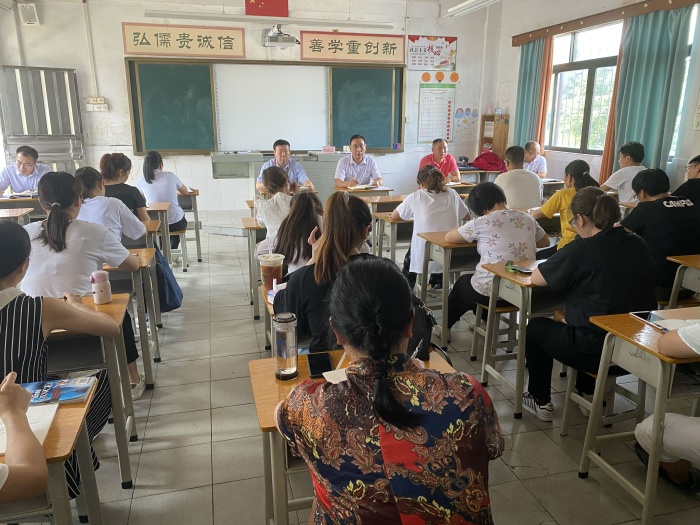 随后,政教处陈七灵副主任就班主任、跟车老师和护送老师等岗位作了相关的说明。他特别强调,班主任一定要利用开学前几天对学生做好收心教育工作和疫情防控等工作,其他岗位的老师一定要守岗有责、爱岗敬业。总务处黎训成副主任物品的使用与维修的问题作了解释说明,他强调,物品的管理责任到人,要求所有教师做好节能降耗工作。何元柱副校长就新学期任课教师、教研组长和功能室负责人等相关事宜作了详细地分工部署,他重点说明了本学期备课方式的改革情况,他还强调,教师们一定要认真备好、上好每一节课,注意根据孩子的实际情况合理布置作业。