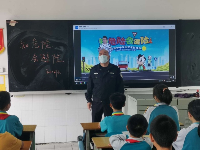 同学们认真聆听,获益匪浅。安全无小事,每个人的生命都只有一次,接下来民众公安分局民城派出所陈冠佳警官进班授课,与同学们近距离接触,引导同学们观看“知危险,会避险”2022年全国中小学生安全教育日交通安全体验课。