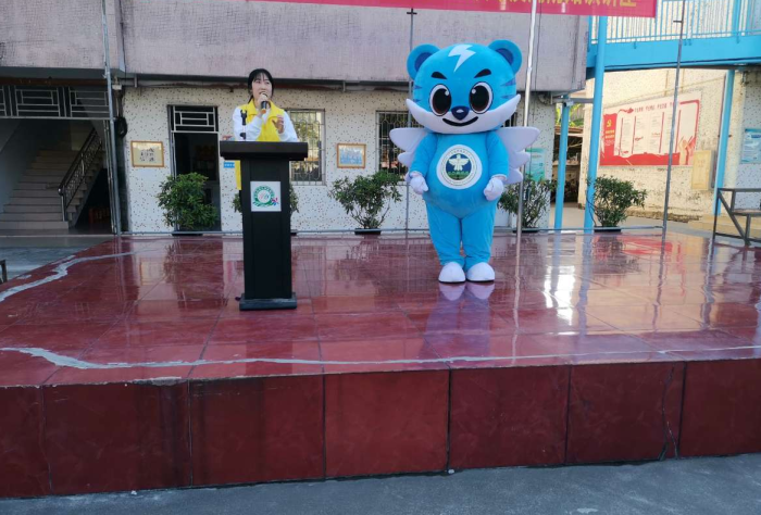 班队课后,学校还邀请了“向日葵”社工队到学校进行毒品宣传。义工代表首先向全校学生介绍了禁毒使者“翼虎”,通过可爱的卡通人物形象引起了学生的兴趣,接着讲述了有关毒品的案例,号召全体学生一旦发现亲朋好友中有吸毒、贩毒行为的人,一要劝阻,二要远离,三要报告公安机关;最后,义工队还组织学生进行了毒品知识竞赛。知识竞赛中,全校学生参与热情高涨,纷纷举手抢答,现场气氛热烈。