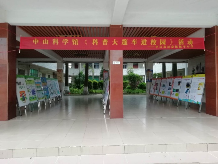 这次活动,中山市科学馆搬来了大量科普设备及展板,并为各学校亲自布展。