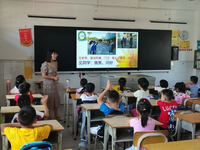 为了让孩子们更好、更快的适应小学生活。班主任从校园安全、文明礼貌、一日常规、课间要求、仪表要求、集队要求、乘车要求等方面入手,体育老师则从集队纪律、队列、队形等方面入手,给孩子们进行了耐心的讲解和示范,为其形成良好的学习、行为习惯奠定基础。孩子们渐渐了解小学生活,融入小学,为全新的学习之旅做好了准备。